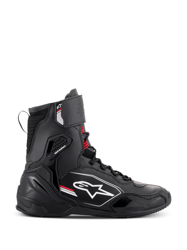 The Superfaster is guaranteed to provide all-day motorcycling protection with all-day walking and standing comfort.The rest of the Superfaster’s chassis is constructed with advanced microfiber and Rideknit® panels with seamless thermo-welded parts and held securely in place on the rider’s foot with a speed lace system and a long medial side zip opening. The overall design is also sculpted with an engineered flex point for freedom of movement with a pre-bent forward construction for riding comfort, and a low overall profile to allow the Superfaster to easily fit under any riding pant.The Superfaster looks like an Alpinestars sport shoe in your denim, feels like your favorite sneaker when you walk because of the new sole. In addition, the Superfaster protects like a real boot with its tall height and full set of protection and offers a stylish look with the ultimate in protection and comfort.