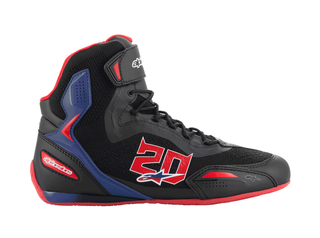FQ20 Faster-3 Rideknit®-skorna kombinerar bilracinginspirerad design med avancerad mikrofiber och Alpinestars revolutionerande Rideknit®-material. FQ20 Faster-3 Rideknit®-skorna är ett perfekt val för Fabio-fans som vill ha de högsta nivåerna av känsla och kontroll på motorcykeln utan att kompromissa med skydd. motorskor