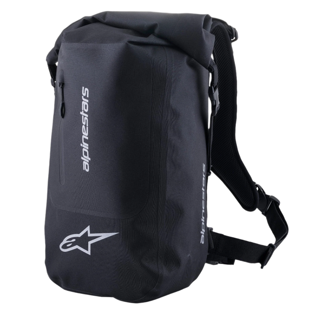 100 % vattentät, sömförseglad konstruktion med rulltoppstängning för enkel användning och sidospännen som håller ryggsäcken kompakt när den är stängd.