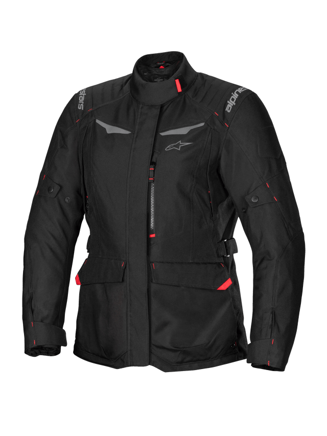 Omdefinierad, modern axeldesign med Alpinestars stilrena varumärkesprofilering ger jackan ett adventure touring-inspirerat utseende.